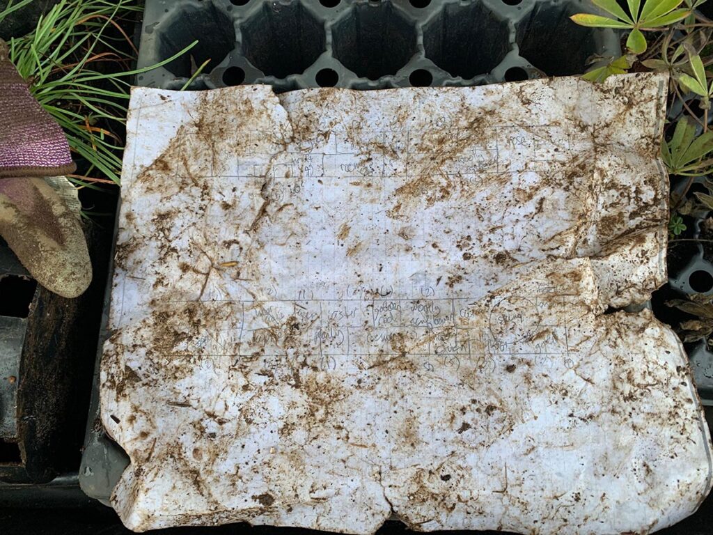 The Root had bought a number of native plants in โ€œplugsโ€ (a young seedling grown in a small, individual cell within a tray) earlier in the year and planted them in pots; tending them during summer. A couple of species (e.g. kinnikinnick) werenโ€™t thriving in the pots as much as others were, but we planted them anyway, crossing our fingers.
